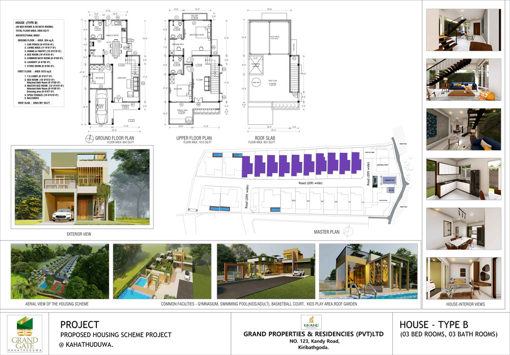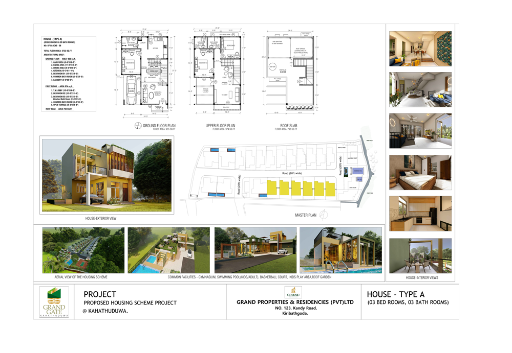 Grand Gate Kahathuduwa is a premier luxury housing project located not more than 1 km away from the Kahathuduwa Highway interchange, that redefines opulent living through a harmonious blend of architectural magnificence, cutting edge-technology. Consisting of 3 types of houses ranging from 2722 square feet to 4324 square feet. We offer you a grandeur space of living not just limited to minimum standards. The scheme is fully equipped with an adult pool, kids’ pool, gym, kids’ play area, basketball court, and common garden area.